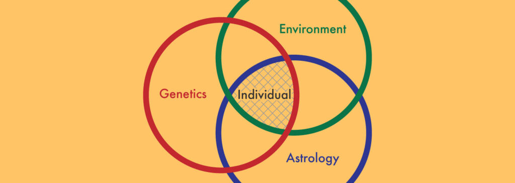 I find it interesting to weave the above concepts together with what I call the Three Circles, which is a concept I discuss in another article.  Basically, the three circles are used to describe three interlocking circles representing Genetics, the Environment & Astrology.  The individual is found in the center area shared by all three circles.